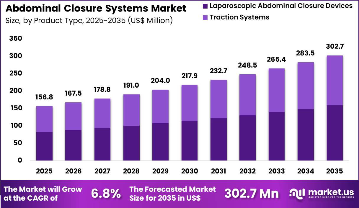 Non-absorbable materials accounted for 56.4% of growth within material type and dominate the abdominal closure systems market due to their higher tensile retention and dependable long-term wound support in abdominal wall closure.