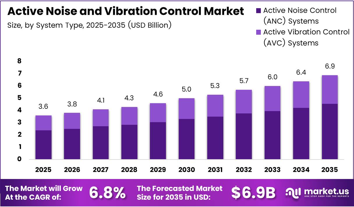 Global Active Noise and Vibration Control (ANVC) Market size is expected to be worth around USD 6.9 Billion by 2035 from USD 3.6 Billion in 2025, growing at a CAGR of 6.8% during the forecast period 2026 to 2035.