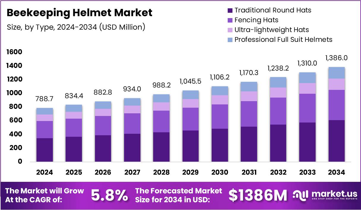 - The Global Beekeeping Helmet Market is projected to reach USD 1386 Million by 2034, up from USD 788.7 Million in 2024.