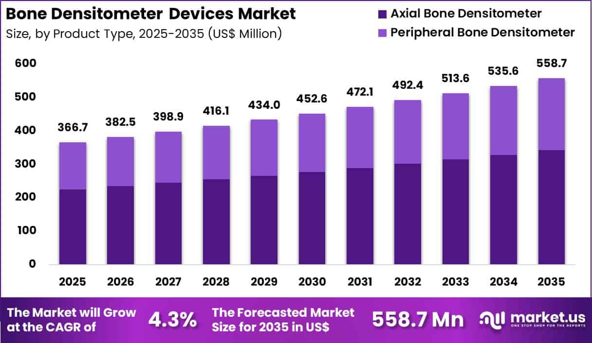 Integration with fracture risk assessment tools enhances clinical utility. Increased awareness of preventive bone health further supports adoption. The segment is expected to remain dominant as axial measurements continue to serve as the gold standard in osteoporosis diagnosis.
