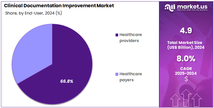 By End-User classified into Healthcare Providers and Healthcare Payers. Healthcare providers dominated the market with an estimated 66.8% share in 2024. The significant share held by this segment can be attributed to the growing need for accurate clinical documentation within hospitals, clinics, and specialty centers to ensure precise coding, optimized reimbursement, and improved patient outcomes.