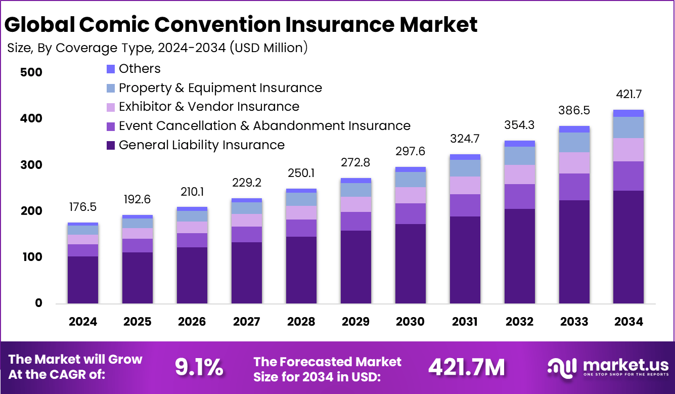 Global Comic Convention Insurance Market Size, Share and Analysis Report By Coverage Type (General Liability Insurance, Event Cancellation & Abandonment Insurance, Exhibitor & Vendor Insurance, Property & Equipment Insurance, Others), By Policy Duration (Single-Event Coverage, Annual/Multi-Event Coverage), By Purchaser (Convention Organizers, Exhibitors & Vendors, Artists & Creators, Venue Owners), By Regional Analysis, Global Trends and Opportunity, Future Outlook By 2025-2034