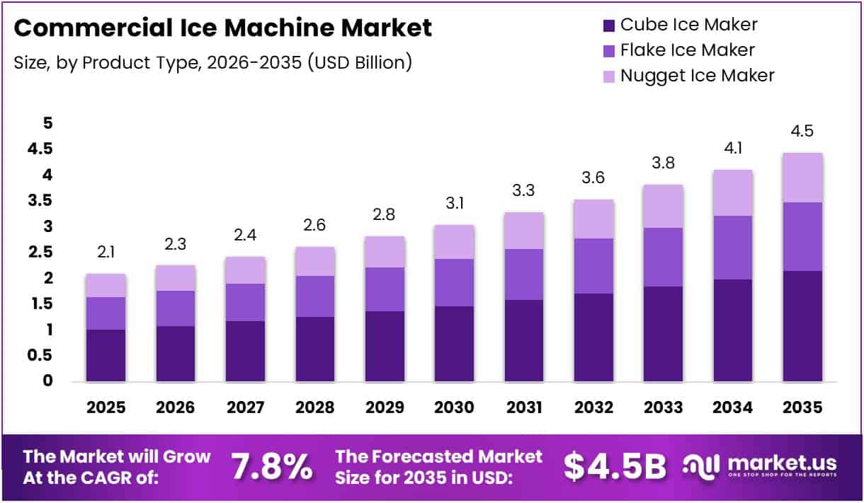 Global Commercial Ice Machine Market size is expected to be worth around USD 4.5 Billion by 2035 from USD 2.1 Billion in 2025, growing at a CAGR of 7.80% during the forecast period 2026 to 2035.