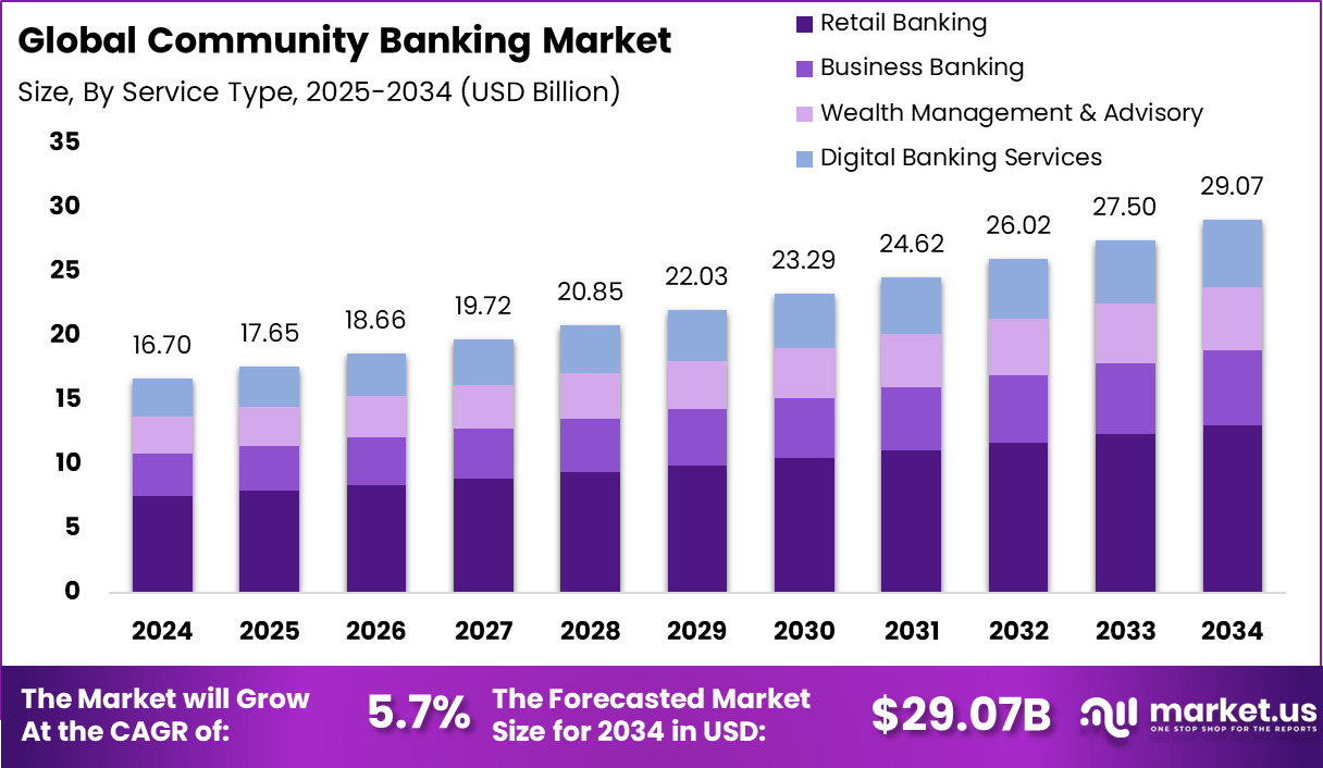Global Community Banking Market Size Analysis, Decision-Making Report By Service Type (Retail Banking, Business Banking, Wealth Management & Advisory, Digital Banking Services), By Institution Type (Credit Unions, Local Savings Banks, Community Development Banks), Region and Companies - Industry Segment Outlook, Market Assessment, Competition Scenario, Trends and Forecast 2025-2034