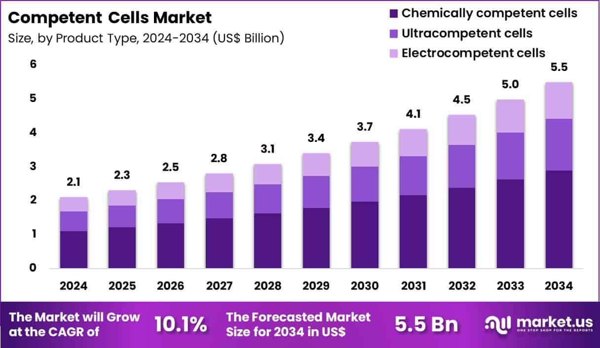 - In February 2024, Bio-Rad introduced Vericheck ddPCR assay kits in the US for detecting replication competent lentivirus and AAV, strengthening quality control processes in viral vector manufacturing. As cell and gene therapy programs continue to scale, upstream activities such as plasmid assembly and vector construction intensify, directly boosting the need for highly efficient competent cells to support increased cloning and packaging workloads.