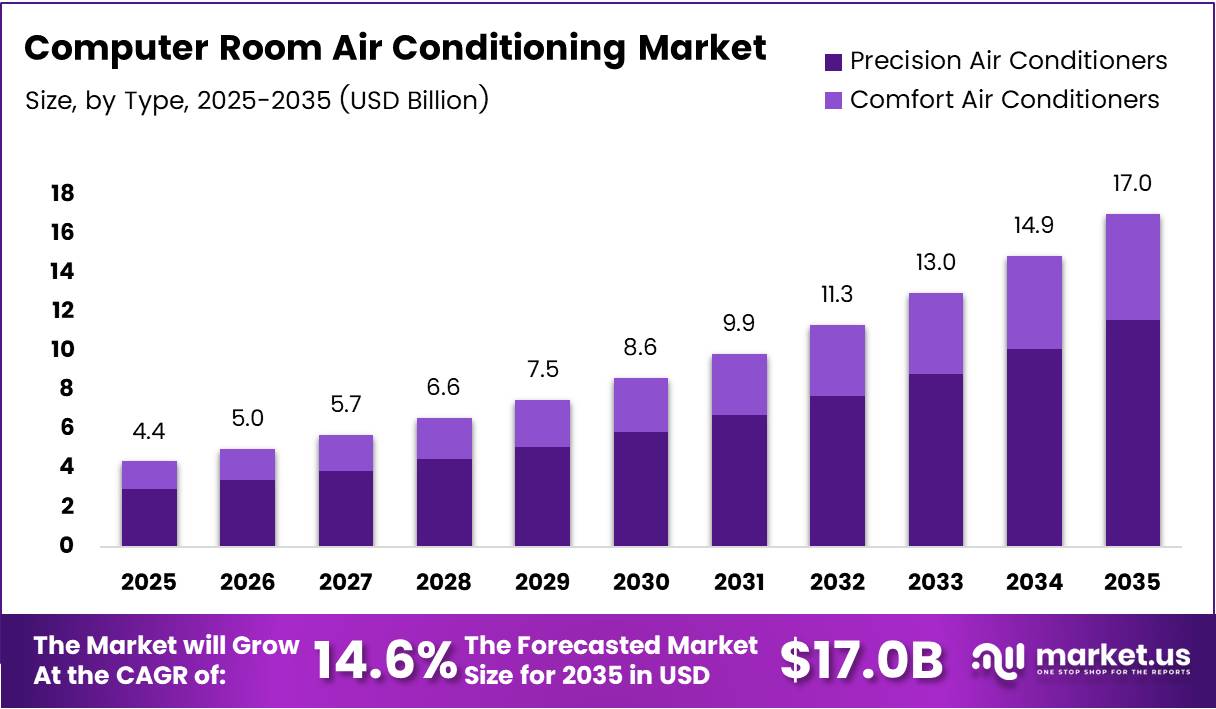 Global Computer Room Air Conditioning Market size is expected to be worth around USD 17.0 Billion by 2035 from USD 4.4 Billion in 2025, growing at a CAGR of 14.60% during the forecast period 2026 to 2035.