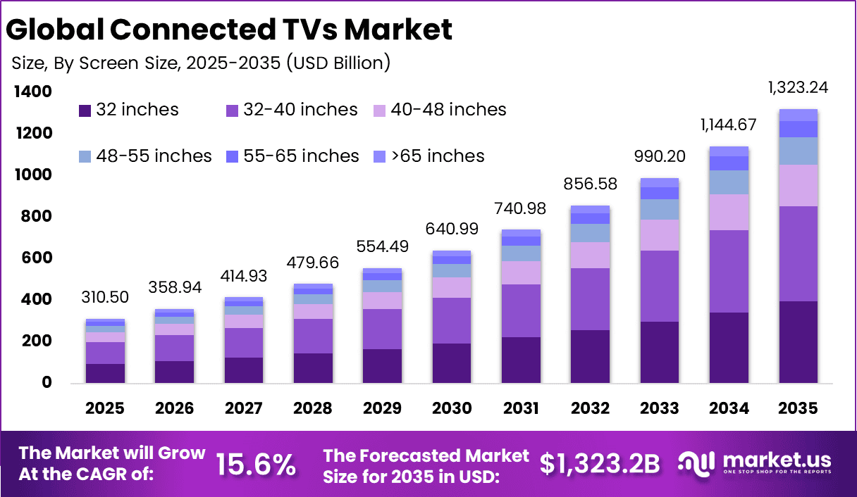 Global Connected TVs Market Size, Share and Analysis Report By Panel Type (LCD, OLED, QLED), By Screen Size (32 Inches, 32–40 Inches, 40–48 Inches, 48–55 Inches, 55–65 Inches, Above 65 Inches), By Smart Features (Voice Control, Gesture Control, Content Streaming, Gaming, Smart Home Integration, Others), By Operating System (Android TV, Tizen OS, webOS, Fire TV OS, Roku OS, Others), By Connectivity Feature (Wi-Fi, Bluetooth, Ethernet, HDMI, USB, Others), By Regional Analysis, Global Trends and Opportunity, Future Outlook By 2025-2035