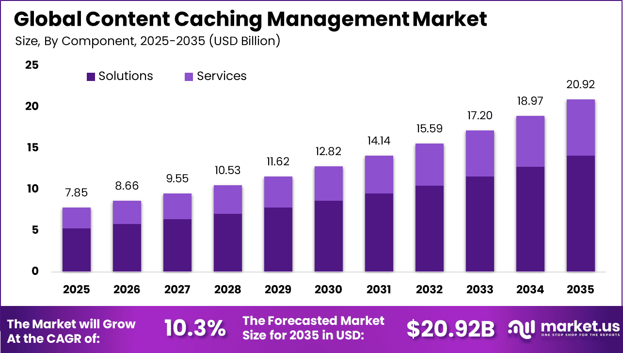 Global Content Caching Management Market Size, Share and Analysis By Component (Solutions, Services), By Deployment Mode (On-Premises, Cloud), By Content Type (Video, Web, Application, Others), By End-User (Enterprises, Service Providers, Government, Media and Entertainment, E-commerce, Education, Others), By Regional Analysis, Global Trends and Opportunity, Future Outlook By 2025-2035