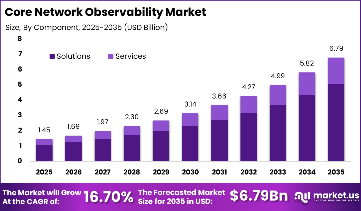 The solutions segment accounted for 74.5% of the market, highlighting its dominant role in enabling comprehensive visibility and control across core network environments. This dominance is driven by the increasing complexity of telecom infrastructure, where operators require integrated platforms for real-time monitoring, analytics, and automated fault detection.