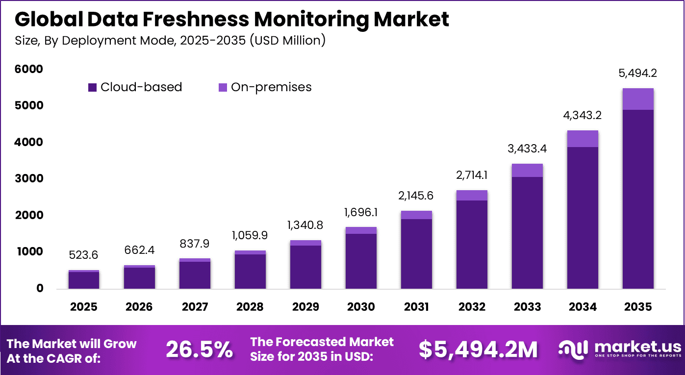 Global Data Freshness Monitoring Market Size, Share and Analysis Report By Deployment Mode (Cloud-based, On-premises), By Application (Business Intelligence and Reporting Dashboards, Data Pipeline and ETL Workflow Monitoring, Real-time Data Stream Monitoring, Data Product and API Monitoring, Others), By End-User Industry (Financial Services and Trading, Retail and E-commerce, Logistics and Supply Chain, Media and Online Services, Others), By Regional Analysis, Global Trends and Opportunity, Future Outlook By 2025-2035