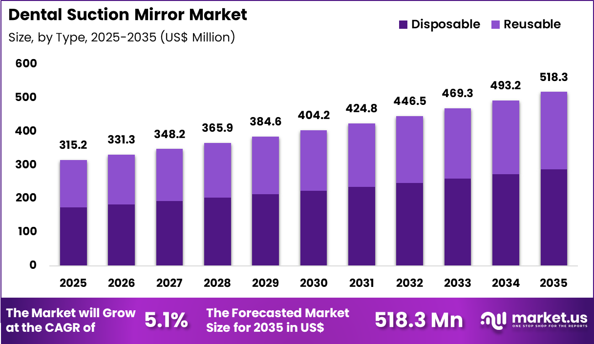 Enhanced mirror durability addresses frequent sterilization cycles in infection control protocols. Facilities prioritize designs that minimize hand fatigue and improve procedural precision. The expansion reflects ongoing emphasis on clinician ergonomics in modern dental practice. Sustained procedural volumes sustain procurement of specialized mirror systems. This factor reinforces consistent market demand for integrated suction-reflective instrumentation.
