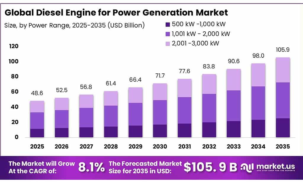 - The global diesel engine for power generation market was valued at USD 48.6 billion in 2025.