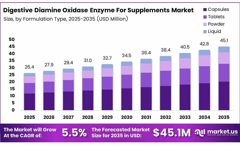 Global Digestive Diamine Oxidase Enzyme For Supplements Market Size, Share, And Industry Analysis Report By Formulation Type (Capsules, Tablets, Powder, Liquid), By Application (Digestive Health, Food Intolerance, Nutritional Supplement, Allergy Management), By Distribution Channel (Online Retail, Pharmacy, Health Food Stores), By End User (Adults, Children, Athletes, Elderly), By Region and Companies - Industry Segment Outlook, Market Assessment, Competition Scenario, Statistics, Trends and Forecast 2026-2035