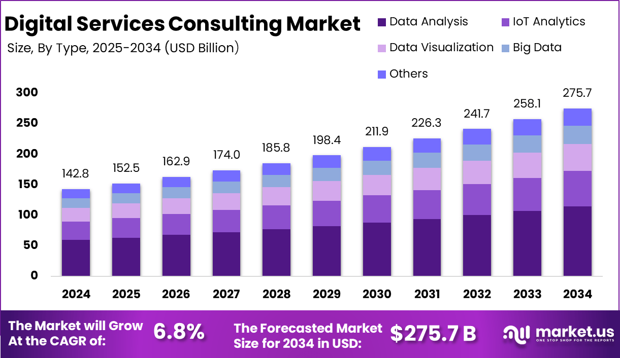 Global Digital Services Consulting Market Size, AI Impact Analysis Report By Type (Big Data, IoT Analytics, Data Visualization, Data Analysis, Others), By Application (Large Enterprises, Small and Mid-sized Enterprises (SMEs)), By Region and Companies - Industry Segment Outlook, Market Assessment, Competition Scenario, Trends and Forecast 2025-2034
