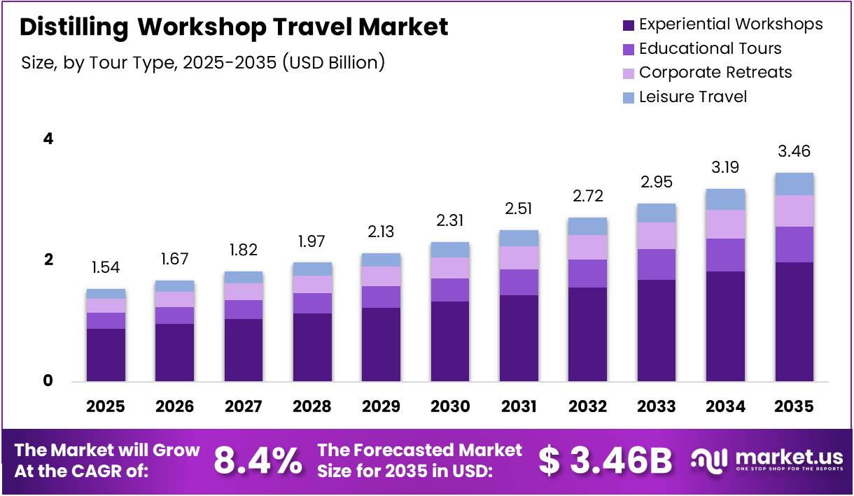 The Global Distilling Workshop Travel Market size is expected to be worth around USD 3.46 Billion by 2035 from USD 1.54 Billion in 2025, growing at a CAGR of 8.4% during the forecast period 2026 to 2035.