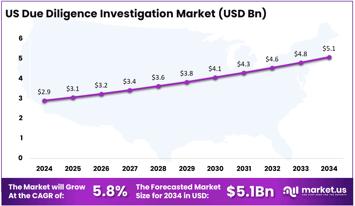 - Market Growth: The Due Diligence Investigation Market is projected to expand from USD 8.5 billion in 2024 to USD 16.7 billion by 2034, growing at a CAGR of 7.40% over the forecast period.