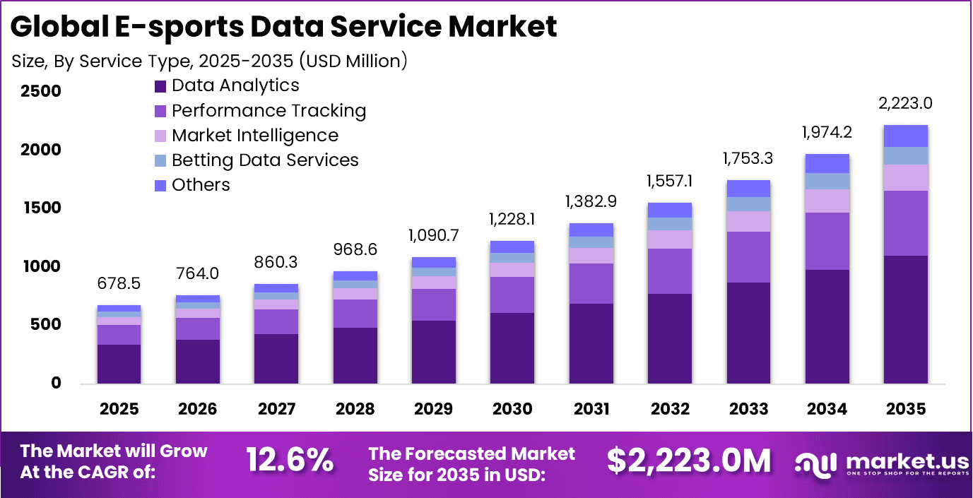 Global E-sports Data Service Market Size, Share and Analysis Report By Service Type (Data Analytics, Performance Tracking, Market Intelligence, Betting Data Services, Others), By Data Source (In-game Data, Player Statistics, Match Results, Viewership Data, Others), By End-User (Esports Teams, Tournament Organizers, Broadcasters, Others), By Regional Analysis, Global Trends and Opportunity, Future Outlook By 2025-2035