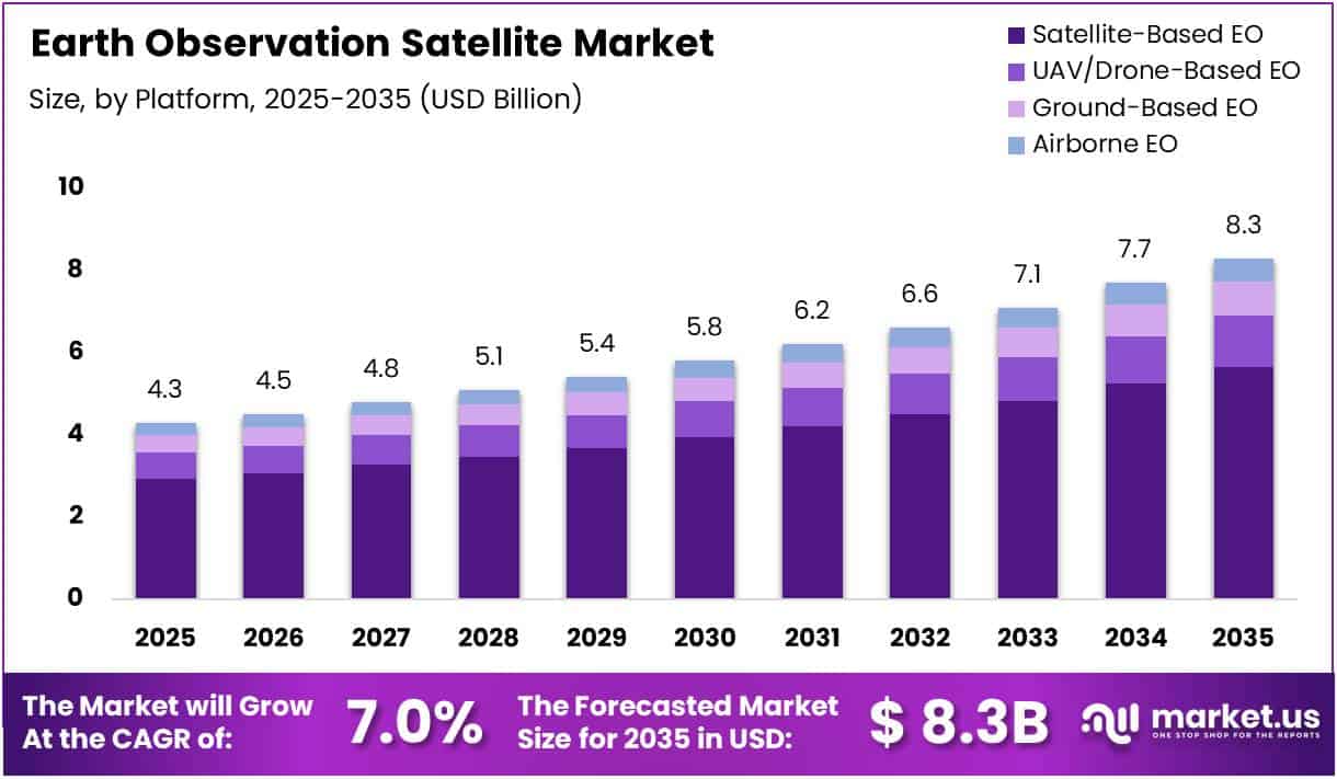 Government investments continue to be a key market driver globally. Agencies including NASA, ESA, and ISRO are actively expanding their EO satellite programs. Consequently, commercial opportunities are growing as governments partner with private firms for data collection, satellite manufacturing, analytics services, and constellation management.