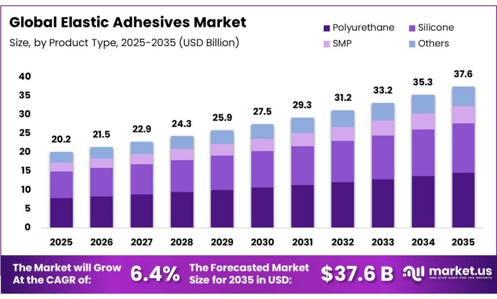 - The global elastic adhesives market was valued at USD 20.2 billion in 2025.