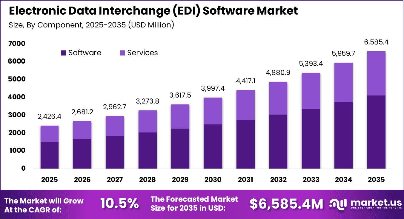Global Electronic Data Interchange (EDI) Software Market Size, Share and Analysis By Component (Software, Services), By Enterprise Size (Small and Medium Enterprises, Large Enterprises), By Industry Vertical (Retail and Consumer Goods, Manufacturing, Healthcare and Life Sciences, Automotive, Logistics and Transportation, Financial Services and Banking, Telecom and IT, Other Industry Verticals), By Regional Analysis, Global Trends and Opportunity, Future Outlook By 2025-2035