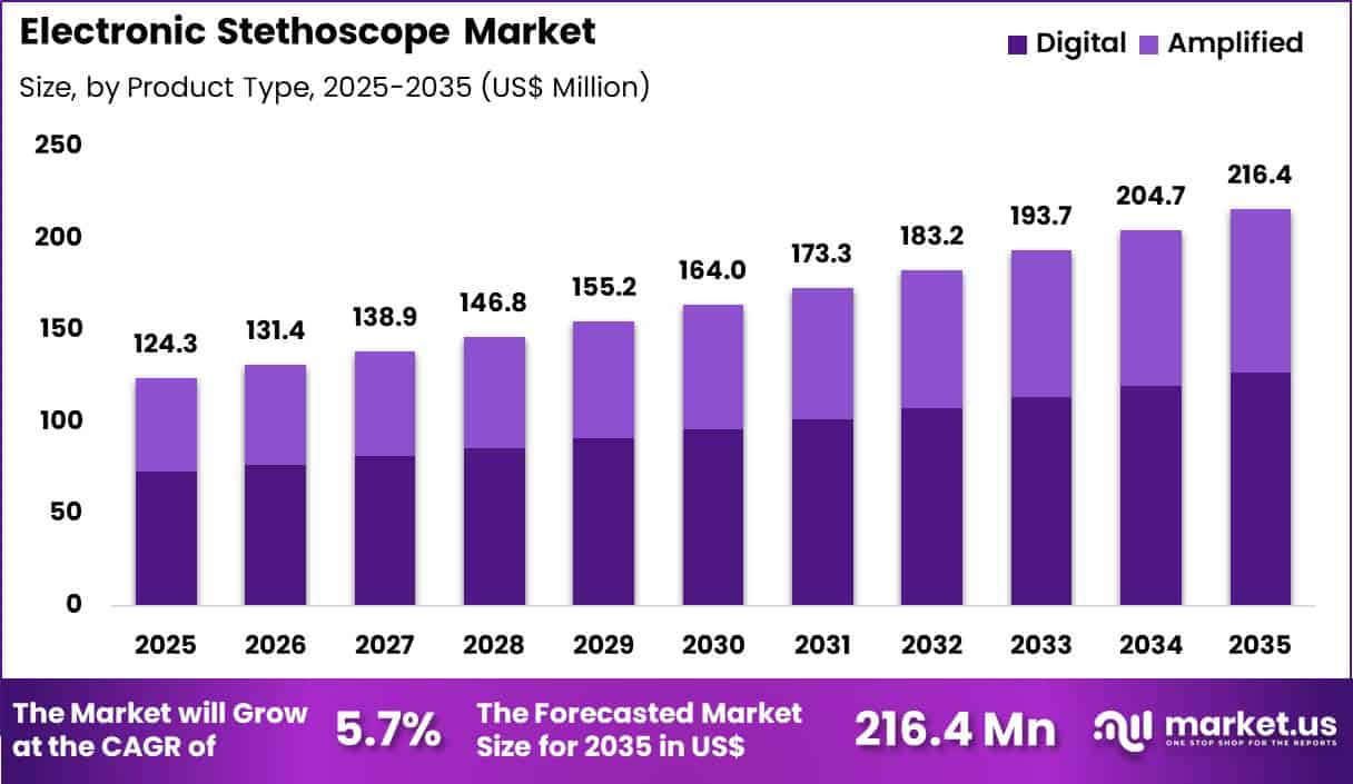 Healthcare providers are adopting electronic stethoscopes to detect subtle murmurs and adventitious sounds that may be missed with acoustic instruments. The correlation between aging populations and higher disease burden further amplifies the requirement for reliable cardiac and pulmonary assessment tools.