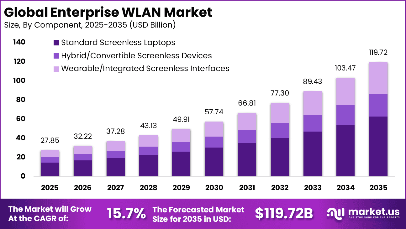 Global Enterprise WLAN Market Size, Share and Analysis Report By Component (Hardware, Software, Services), By Deployment Mode (On-premises, Cloud-managed), By Organization Size (Large Enterprises, Small and Medium-sized Enterprises (SME), By End-user Vertical (Banking, Financial Services and Insurance, Healthcare, Retail, IT and Telecommunications, Manufacturing, Education, Hospitality, Other Verticals), By Regional Analysis, Global Trends and Opportunity, Future Outlook By 2025-2035