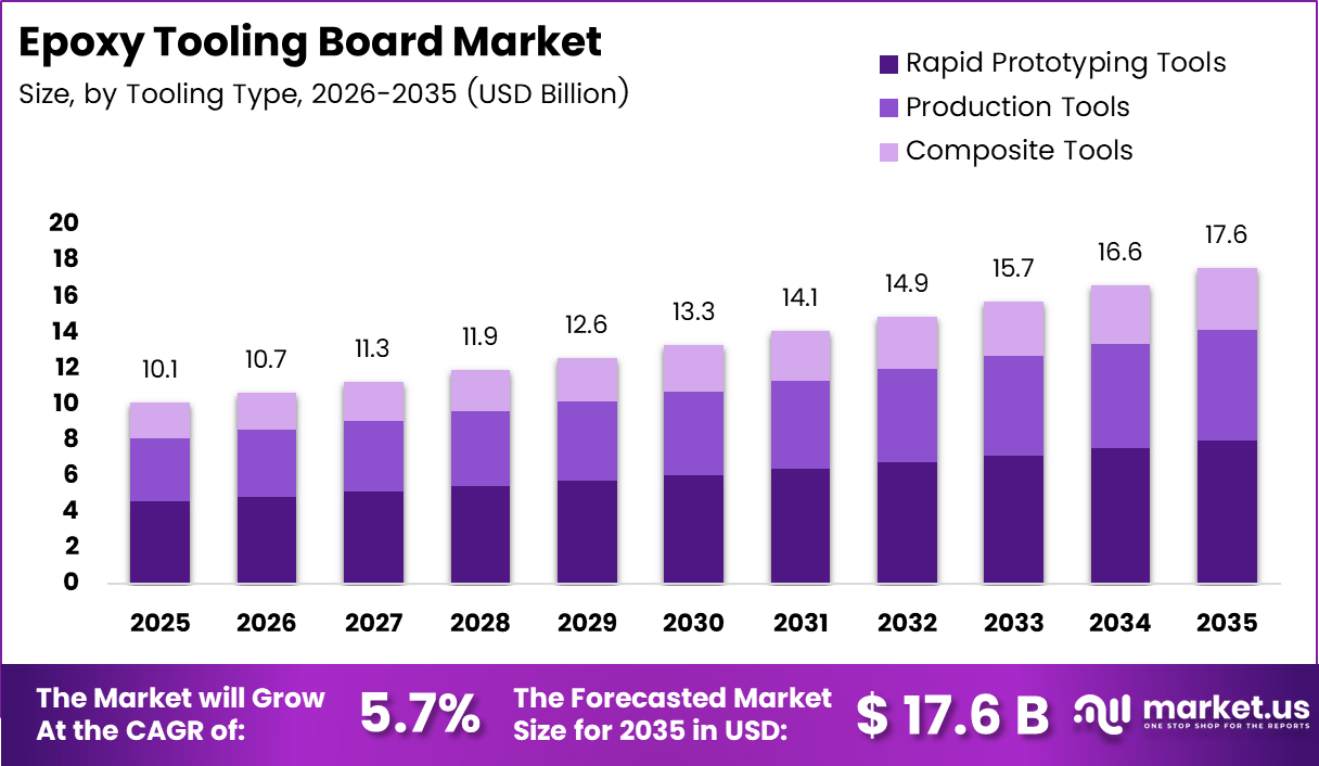 Global Epoxy Tooling Board Market size is expected to be worth around USD 17.6 Billion by 2035 from USD 10.1 Billion in 2025, growing at a CAGR of 5.7% during the forecast period 2026 to 2035.