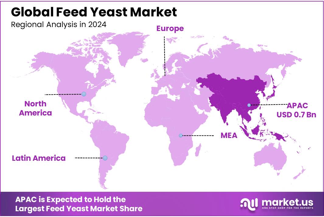 - Asia Pacific shines as the clear leader in the feed yeast market, capturing a commanding 45.9% share—equivalent to roughly USD 0.7 billion—in 2024.