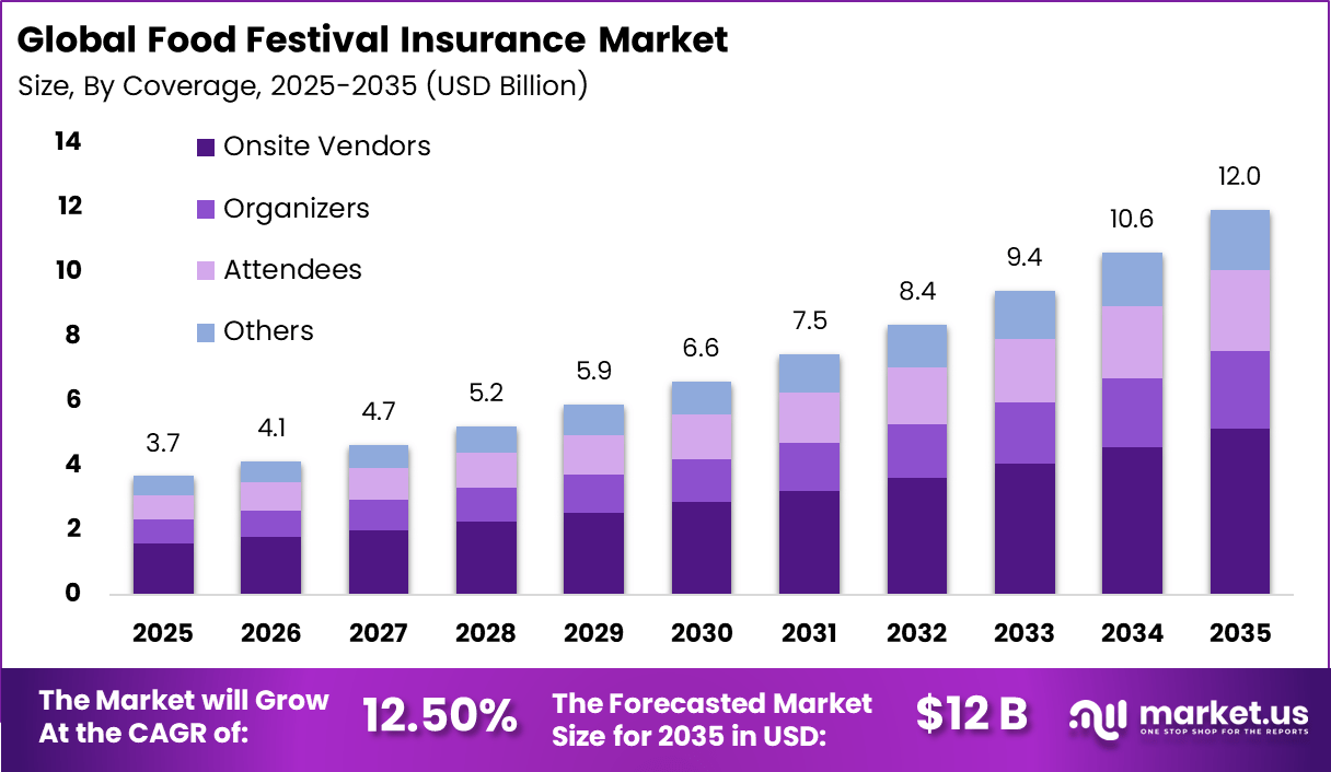 Global Food Festival Insurance Market By Type (General Liability Insurance, Liquor Liability Insurance, Property Insurance, Event Cancellation Insurance, Others), By Coverage (Onsite Vendors, Organizers, Attendees, Others), By Distribution Channel (Direct Sales, Brokers/Agents, Online Platforms, Others), By End-User (Food Festival Organizers, Food Vendors, Venue Owners, Others), By Regional Analysis, Global Trends and Opportunity, Future Outlook By 2025-2035