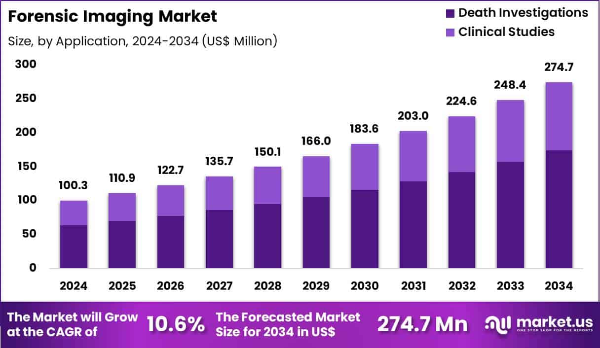 Collaboration with law enforcement and judicial bodies increases utilization intensity. The segment is expected to remain the primary growth driver as forensic institutes continue to anchor death investigation services and evidentiary imaging workflows.
