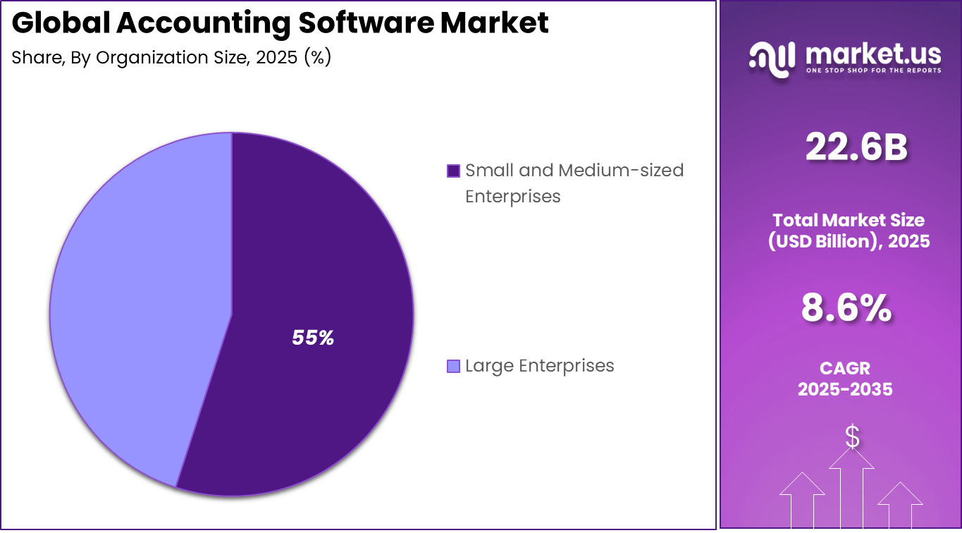Small and medium sized enterprises accounted for 55.0% of adoption. These businesses seek cost effective tools to manage accounting operations without extensive finance teams. Digital platforms automate bookkeeping and tax calculation tasks. This reduces administrative workload and improves accuracy.