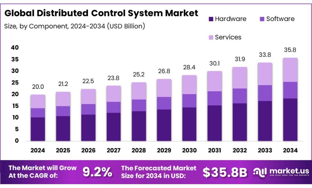 - Distributed Control System Market size is expected to be worth around USD 35.8 Billion by 2034, from USD 20 Billion in 2024, growing at a CAGR of 9.2%.
