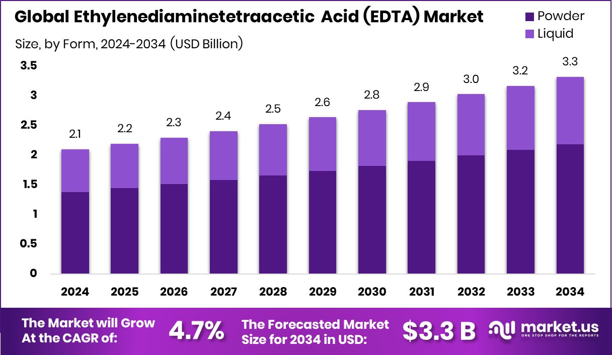 In 2024, powder form dominated the Ethylenediaminetetraacetic Acid (EDTA) market with a 65.9% share.