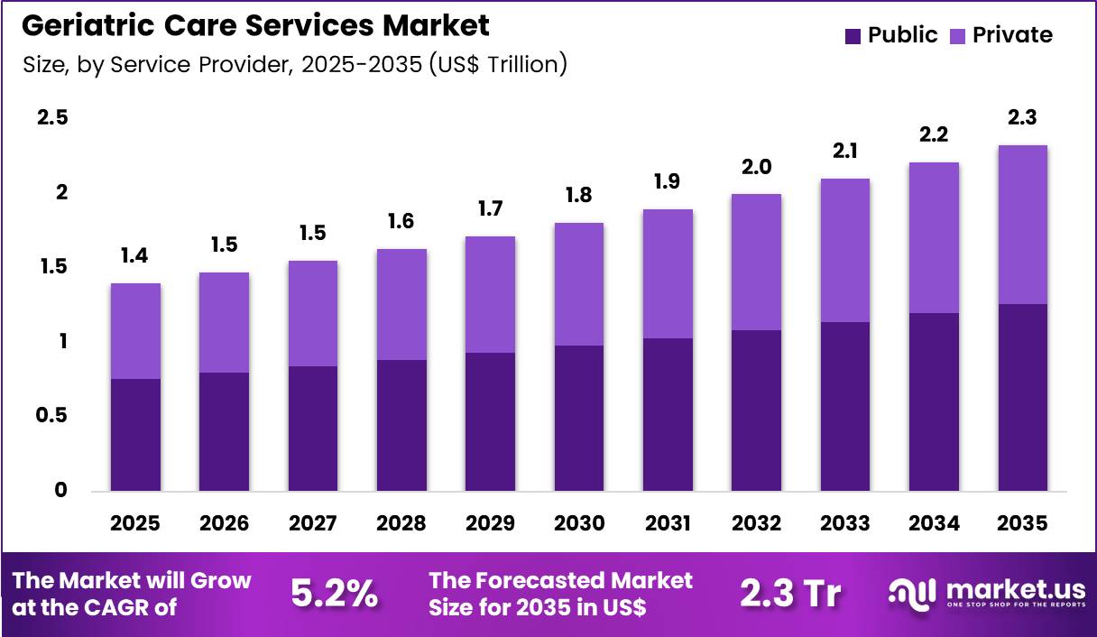 Public providers accounted for 54.2% of growth within service provider and led the geriatric care services market due to extensive government-supported eldercare programs. National healthcare systems allocate significant funding to long-term care facilities, community health centers, and home support services for aging populations.