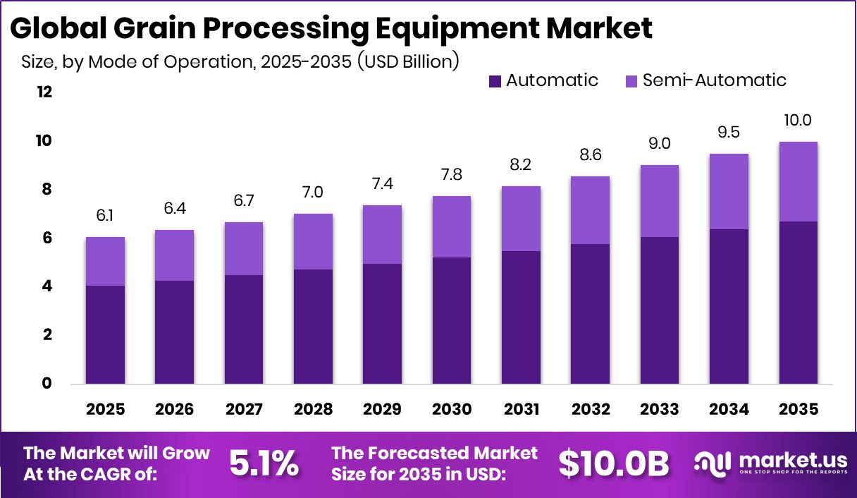 Grain Processing Equipment Market is dominated by automatic mode operations with 67.2% share.