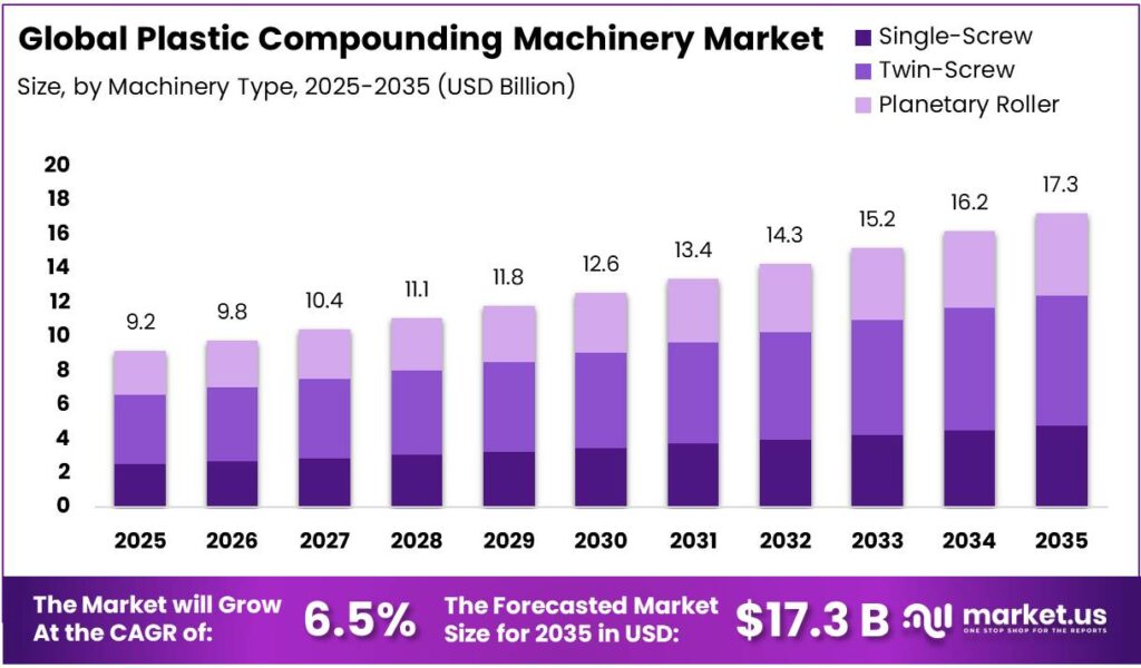 - The global plastic compounding machinery market was valued at USD 9.2 billion in 2025.