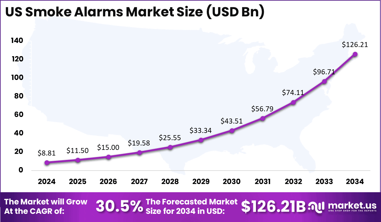 - US Market Growth: The US smoke alarms market is expected to reach USD 8.81 billion, with an impressive CAGR of 30.5%, indicating strong demand and rapid adoption of smart fire safety solutions.