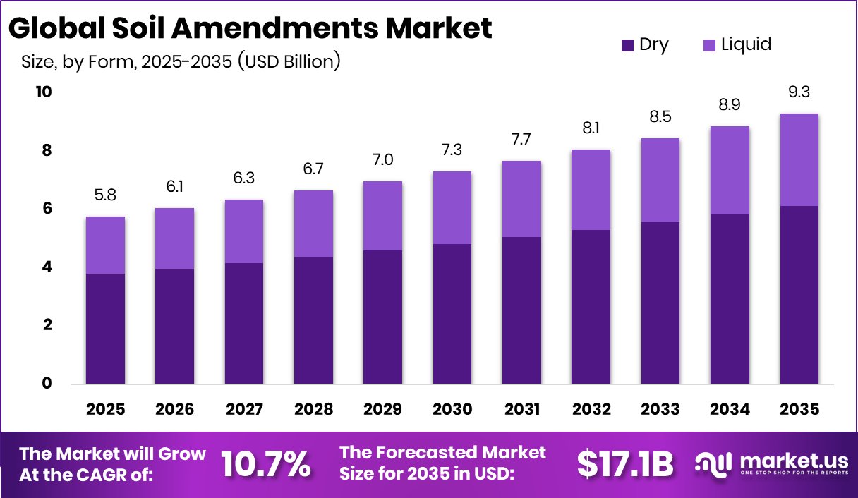 Global Soil Amendments Market Size, Share, And Enhanced Productivity By Form (Dry, Liquid), By Type (Organic (Polysaccharide derivatives, Humic Acid, Seaweed, Biofertilizers), Inorganic (Gypsum, Lime)), By Soil Type (Sand, Loam, Clay, Slit), By Crop Type (Cereals and Grains, Oilseeds and Pulses, Fruits and Vegetables, Others), By Region and Companies - Industry Segment Outlook, Market Assessment, Competition Scenario, Trends, and Forecast 2025-2034