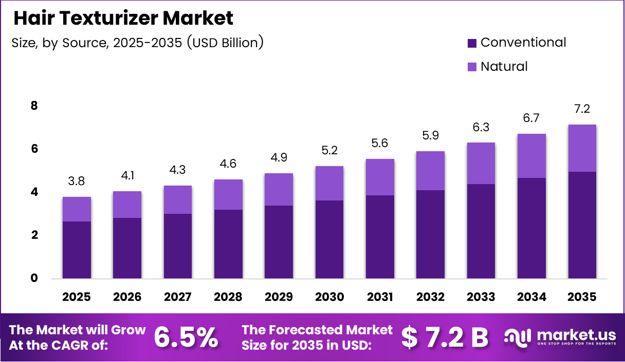 Global Hair Texturizer Market size is expected to be worth around USD 7.2 Billion by 2035 from USD 3.8 Billion in 2025, growing at a CAGR of 6.5% during the forecast period 2026 to 2035.