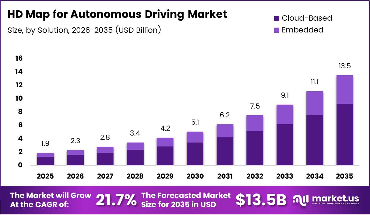 - Global HD Map for Autonomous Driving Market projected to reach USD 13.5 Billion by 2035 at 21.7% CAGR