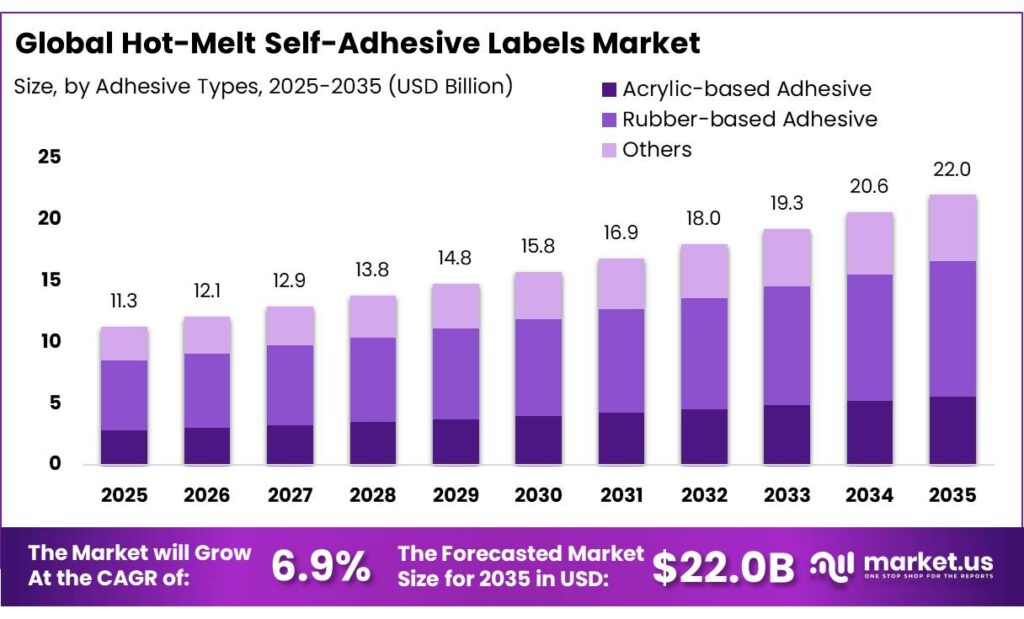 - The global hot-melt self-adhesive labels market was valued at USD 11.3 billion in 2025.