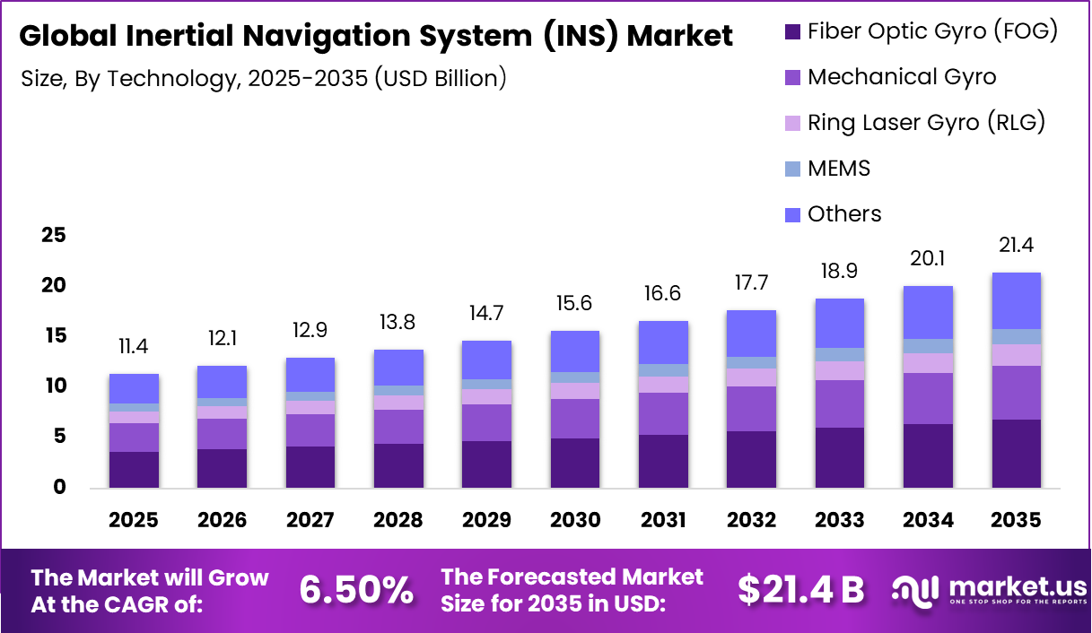 The Global Inertial Navigation System (INS) Market generated USD 11.4 billion in 2025 and is predicted to register growth from USD 12.1 billion in 2026 to about USD 21.4 billion by 2035, recording a CAGR of 6.50% throughout the forecast span. In 2025, North America held a dominant market position, capturing more than a 39.8% share, holding USD 4.53 Billion revenue.