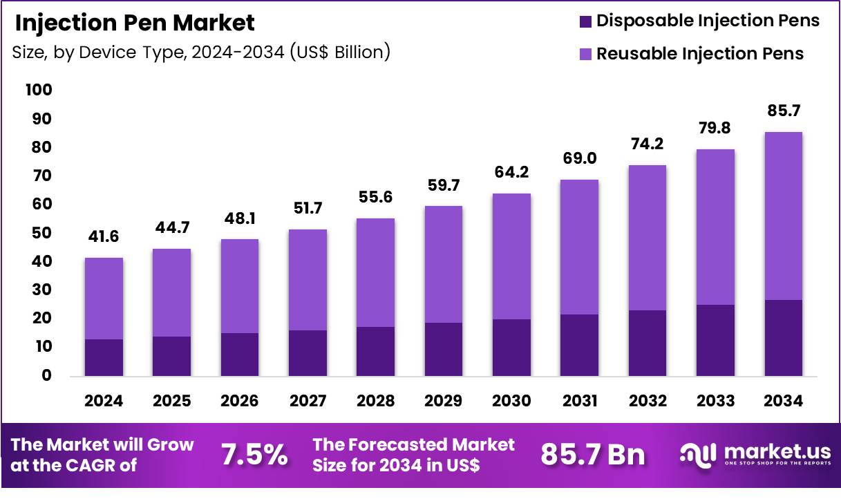 - The device type segment is divided into disposable injection pens and reusable injection pens, with reusable injection pens taking the lead in 2024 with a market share of 68.6%.