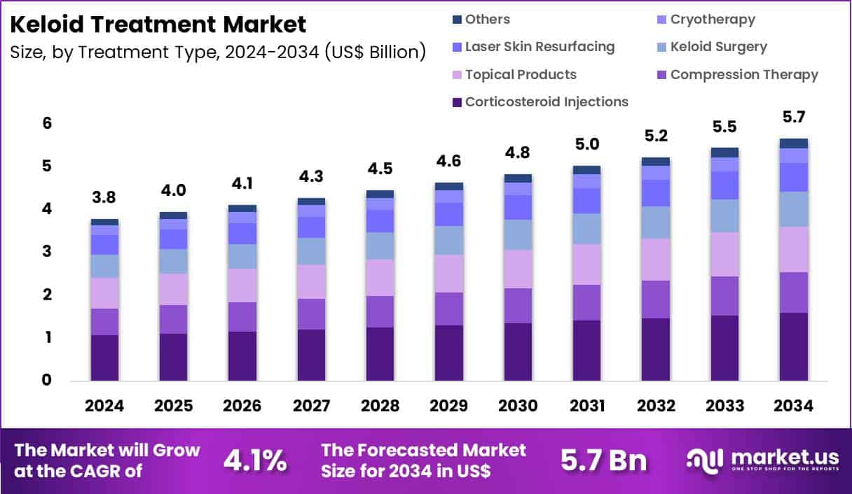 Healthcare systems are responding by prioritizing accessible treatments to manage this chronic scarring disorder. The correlation between surgical procedures and keloid development further escalates the need for preventive and remedial solutions. Public health efforts emphasize education on risk factors to facilitate early intervention.