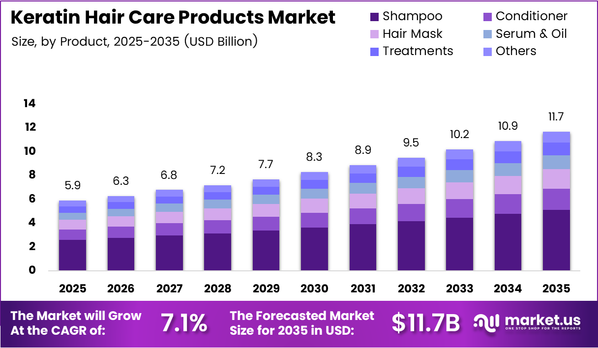 Global Keratin Hair Care Products Market size is expected to be worth around USD 11.7 Billion by 2035 from USD 5.9 Billion in 2025, growing at a CAGR of 7.1% during the forecast period 2026 to 2035.