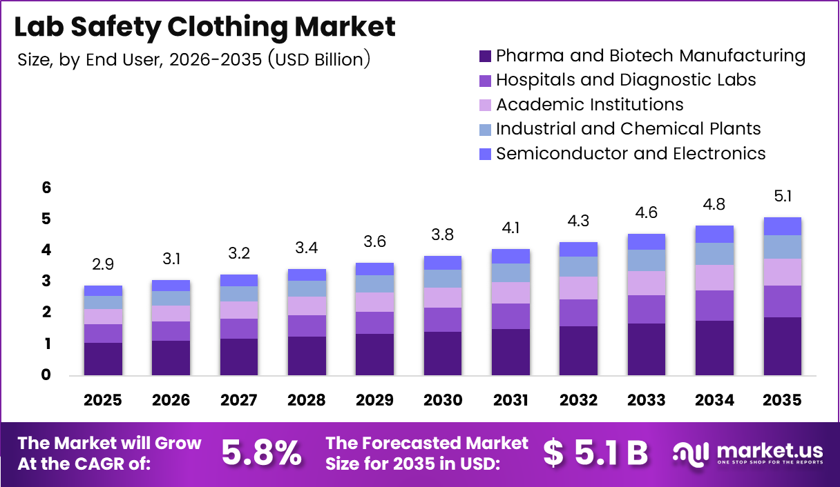 Global Laboratory Protective Clothing Market size is expected to be worth around USD 5.1 Billion by 2035 from USD 2.9 Billion in 2025, growing at a CAGR of 5.8% during the forecast period 2026 to 2035.
