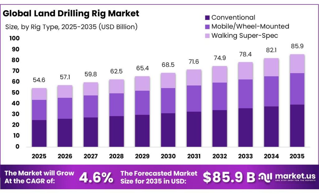 - Land Drilling Rig Market size is expected to be worth around USD 85.9 Billion by 2035, from USD 54.6 Billion in 2025, growing at a CAGR of 4.6%.