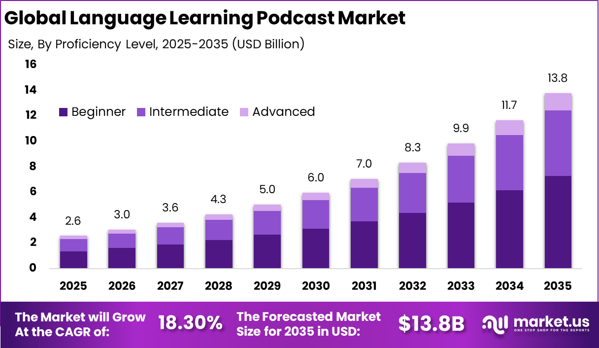 Growth in the Language Learning Podcast market is expected to continue as learners prefer flexible and audio based study formats. Podcasts allow users to practice listening skills during daily activities such as commuting or exercise, which supports consistent learning habits.