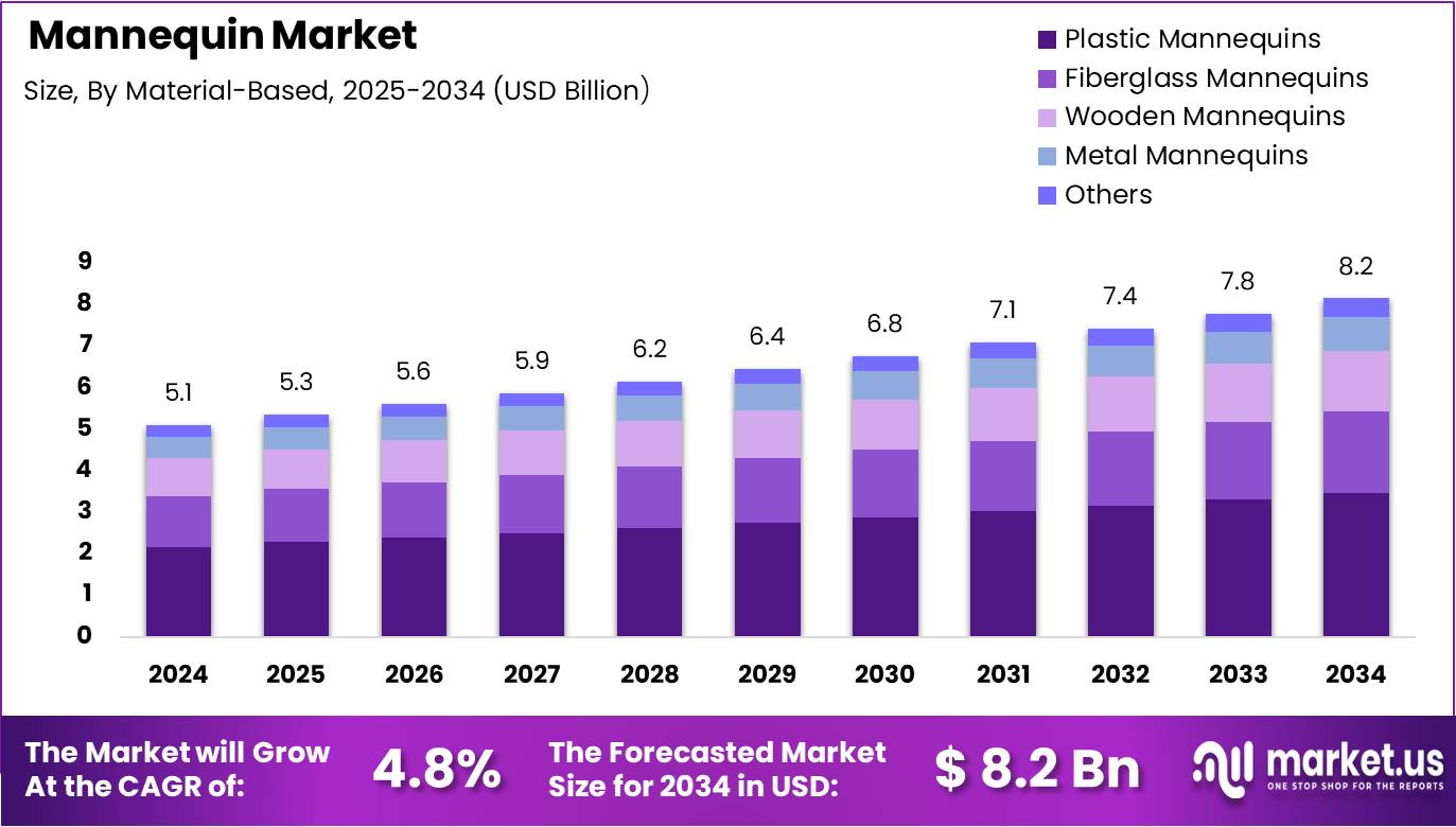 - Global Mannequin Market size is expected to reach USD 8.2 Billion by 2034 from USD 5.1 Billion in 2024, growing at a CAGR of 4.8%.