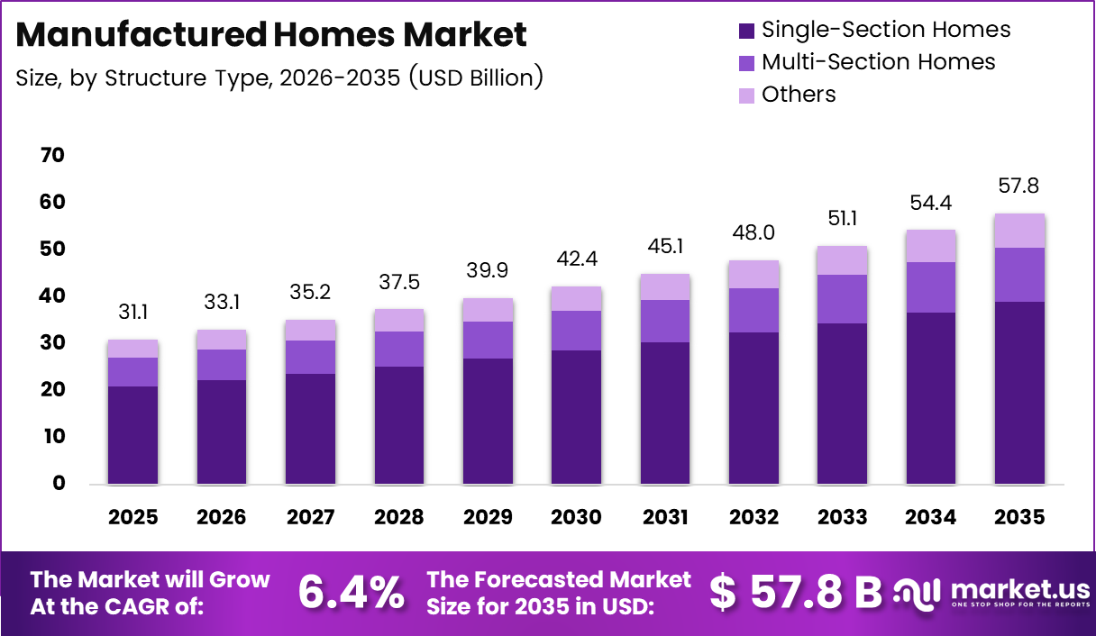 - Single-Section Homes segment leads Structure Type category with 67.6% market share